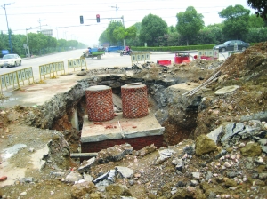 这位负责人表示:在修复好破裂的管道后,施工人员采用先抽出地底下的部分泥浆再浇灌混凝土的方法来回填大坑,但是,时间长了不排除混凝土再次流走的可能。如果想彻底解决“天坑”下陷问题,就需要将整条路深挖十几米直到流沙层。但是目前新区金城路、锡太路等多条干道都在施工,他们只好先将大坑围起来进行局部修补。“大修”则要等到金城路修通以后了。 |