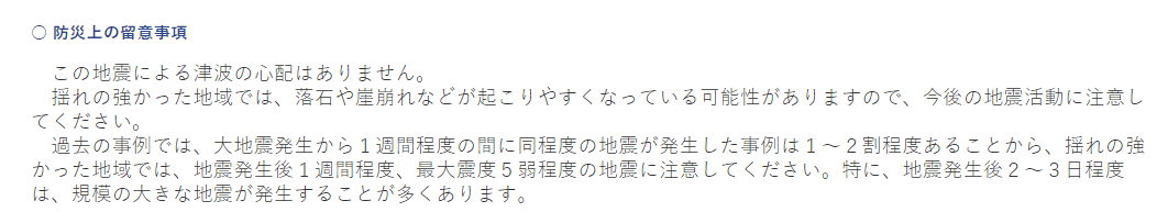 日本气象厅发布防灾注意事项,提醒震感强烈地区在接下来1周内提高防范,并称震感明显的地区可能出现落石和山体滑坡,根据以往经验,尤其是地震发生后2-3天左右,经常会发生大规模的地震。