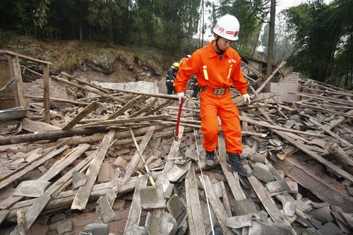 遂宁救援队正在房屋倒坍现场搜救(记者 钟敏现场报道 来源:遂宁新闻网)