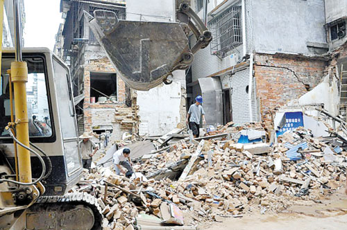 正在现场指挥拆除工作的韶关市建设局副局长郭春元告诉记者,考虑到过往行人安危,必须拆除士多和手机店这两座危房。“据专家初步鉴定,房子下陷是因为建在较松动的土地上,且房子下边有条地下沟破了,地下水慢慢浸湿土地所致,至于房子下面是否有地下河、地下溶洞等,尚待专家判断。”而房屋开裂的黄先生家也被下达了撤离通知书,这座三层楼房最终是修补还是拆除,还要根据地质结构报告出来后才能决定。